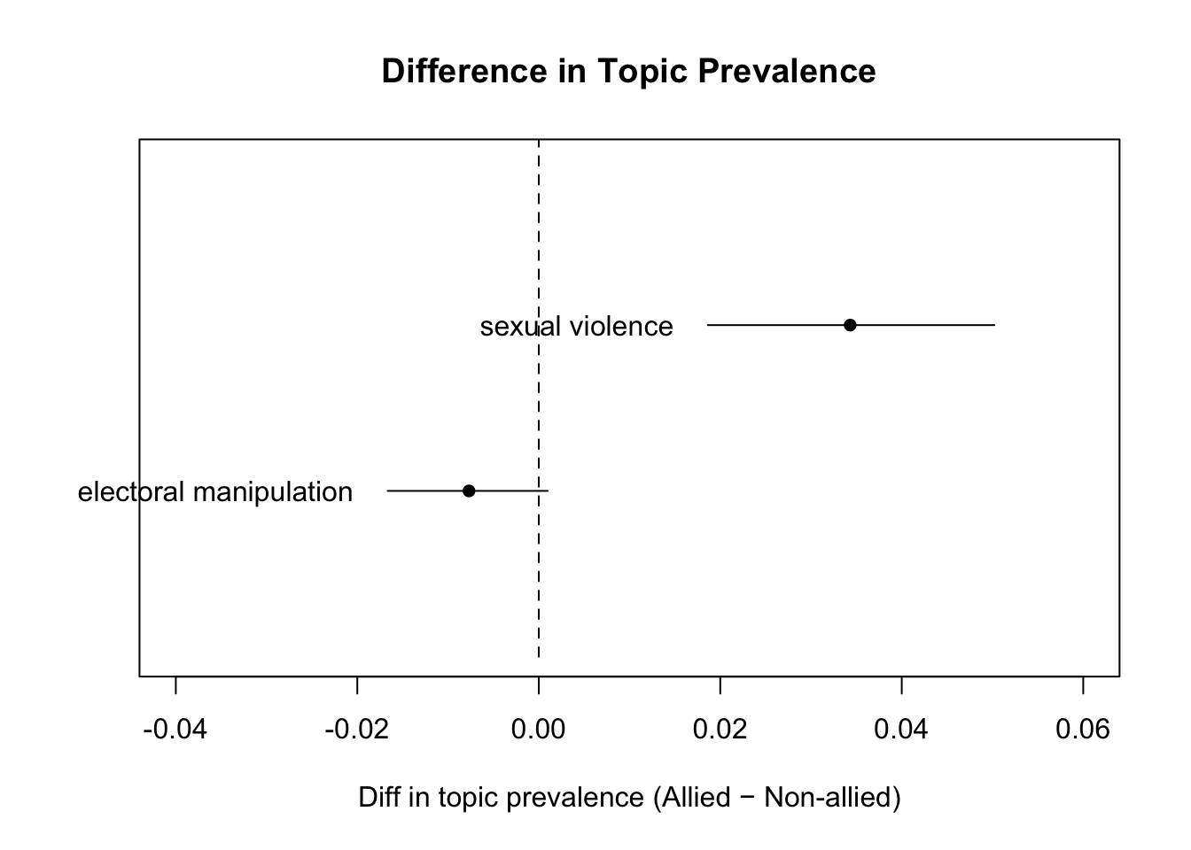 xlab = "Diff in topic prevalence (Allied − Non-allied)",
